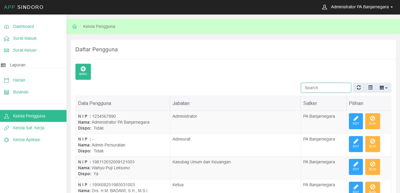 Menu ini hanya berlaku untuk pengguna administrator & digunakan untuk penambahan/pengubahan akses pengguna sesuai jabatan/fungsi masing-masing.